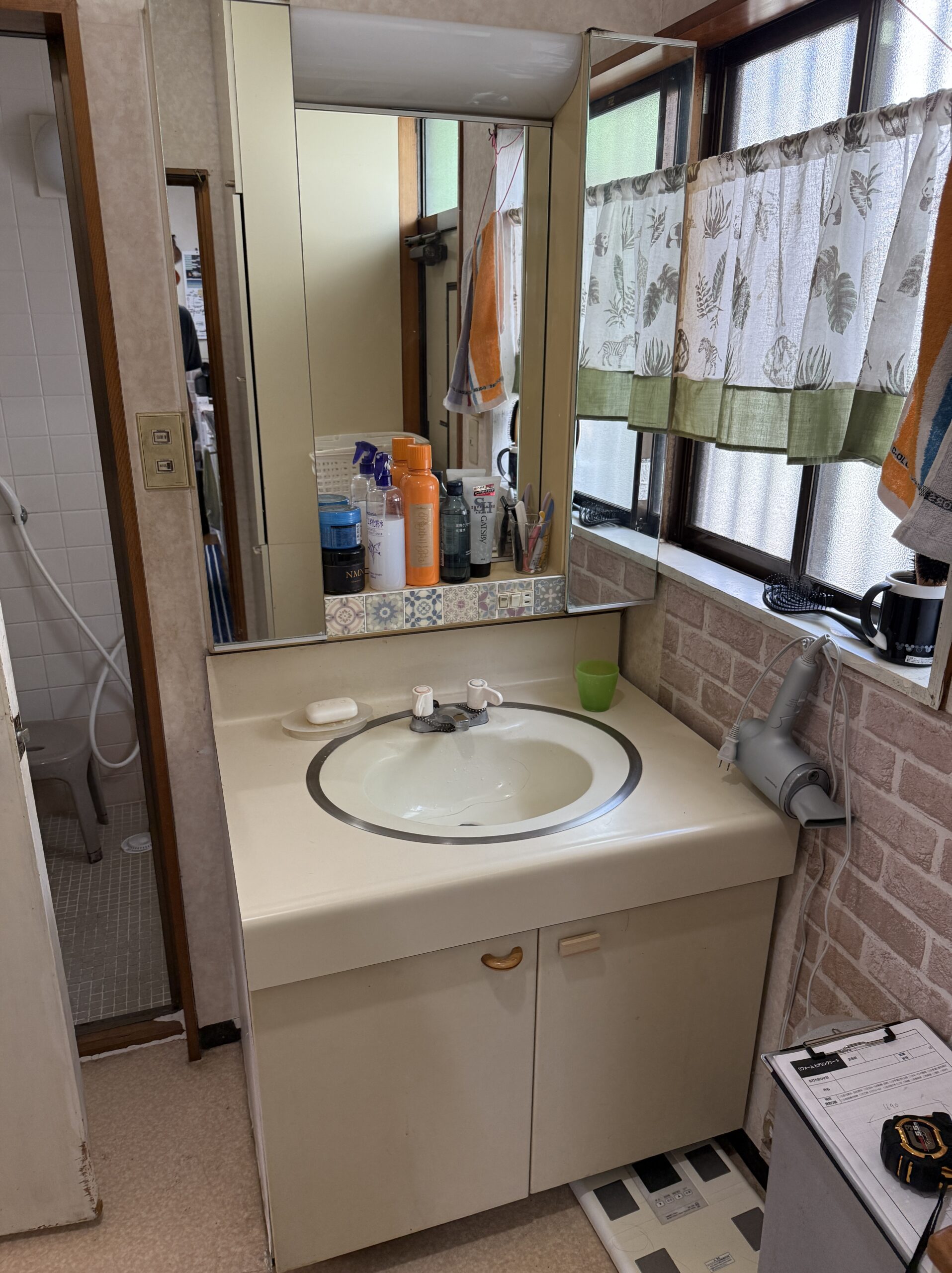 - 施工箇所:洗面脱衣所クロス張替え(壁・床・天井)、洗面台